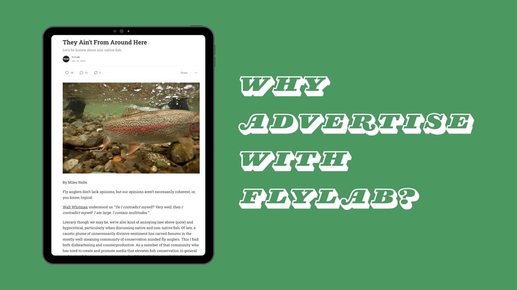 Flylab is a team of fly-fishing media pros, and we run the Flylab website, Flylab Substack, Flylab Newsletter, Angling Trade and social media.